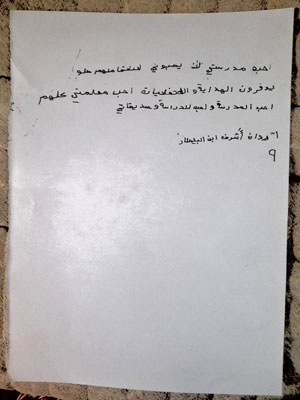 وللطفولة نصيب في هذا المشغل.. روان أشرف، التلميذة في مدرسة ابن البيطار والبالغة من العمر 9 سنين، كتبت بعفوية: أحب مدرستي، لأنهم يحبونني ولأن تعاملهم حلو. يوفرون الهدايا والاحتفالات. أحب كل معلماتي والمدرسة والدراسة وصديقاتي.