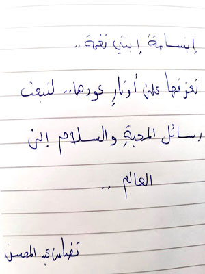 "ابتسامة ابنتي نغمة... تعزفها على أوتار عودها... لتبعث رسائل