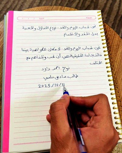 "نحن شباب اليوم والغد، حين نختار المحبة والتفاهم نصنع السلام