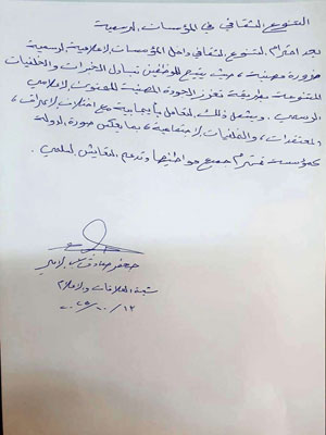 ولا سيما مجال العمل الإعلامي الرسمي، أعقبه تطبيق كتابي للموظفين