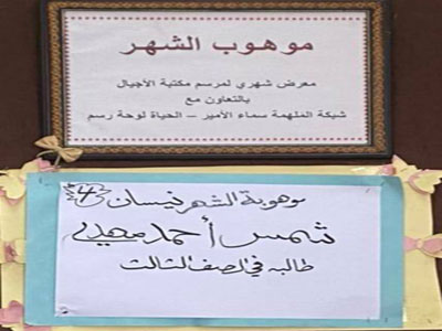 معرض موهوب شهر نيسان، الذي تضمن أعمال الموهوبة (شمس احمد)،