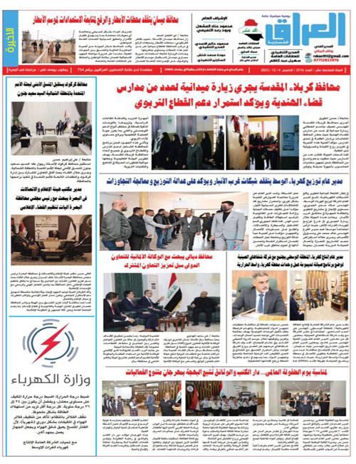 صحيفة العراق العدد ٢٥١٦في يوم الخميس الموافق