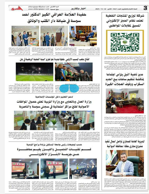 صحيفة الشرق العدد 4661 اليوم الاثنين 2025/12/22 |