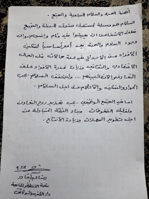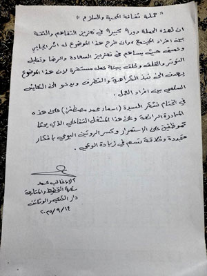 وكتبت الموظفة رشا عبد القادر في مساهمتها " إن السلام وسيلة