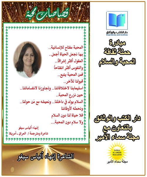 العراقية المغتربة في أمريكا السيدة إنهاء ألياس سيفو، مع مطلع