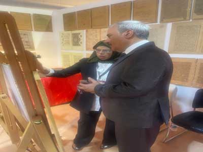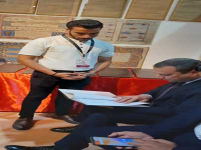 مدير عام قصر المؤتمرات الدكتور منتصر الحسناوي يزور جناح الدار مطلعا على اندر الوثائق التي تم عرضها في الجناح