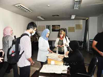 من جانبها رافقت الوفد مديرة المكتبة الوطنية بان صلاح الدين،