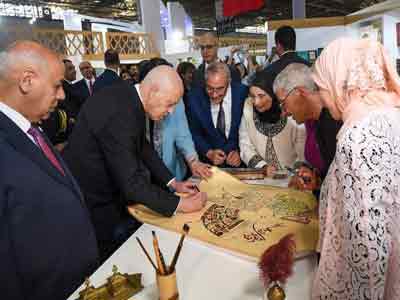 الرئيس التونسي يزور الجناح العراقي في معرض تونس الدولي للكتاب